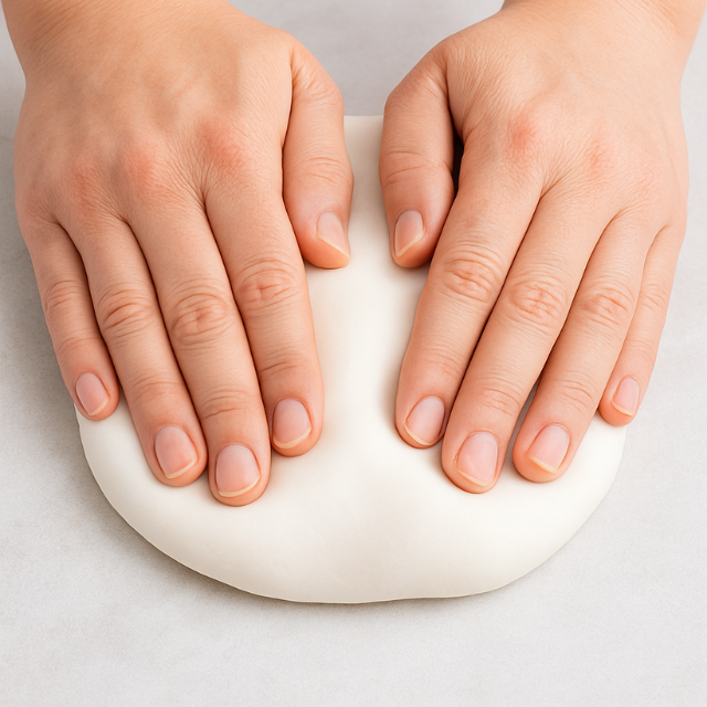 Amasa la pasta hasta que quede suave y flexible sólo con el calor de las manos, en pocos minutos tendrás la pasta lista para usar.