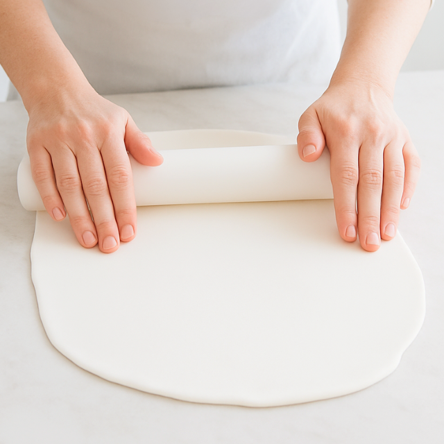 Elije una superficie limpia y seca, extiende la pasta con un rodillo de manera pareja hasta que tenga un espesor de 2 a 4 mm.