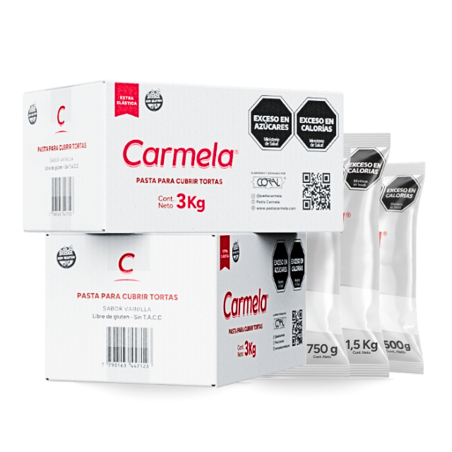 La línea de pastas para cubrir tortas Carmela es elástica, suave, fácil de amasar, con un delicioso sabor a vainilla. Su textura flexible permite tiempos de trabajo prolongados sin agrietarse, logrando superficies lisas y un acabado profesional. Es perfecta para alisar, fundir uniones y corregir imperfecciones. Ideal para cubrir y decorar tortas, cupcakes y galletas.